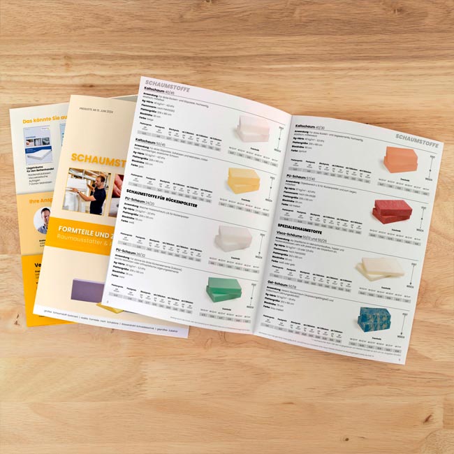 Fordere jetzt kostenlos unsere Preisliste "Schaumstoffe - Formteile und Zubehör für Raumausstatter & Polsterei" mit allen Produkten und Staffel-Preisen an.